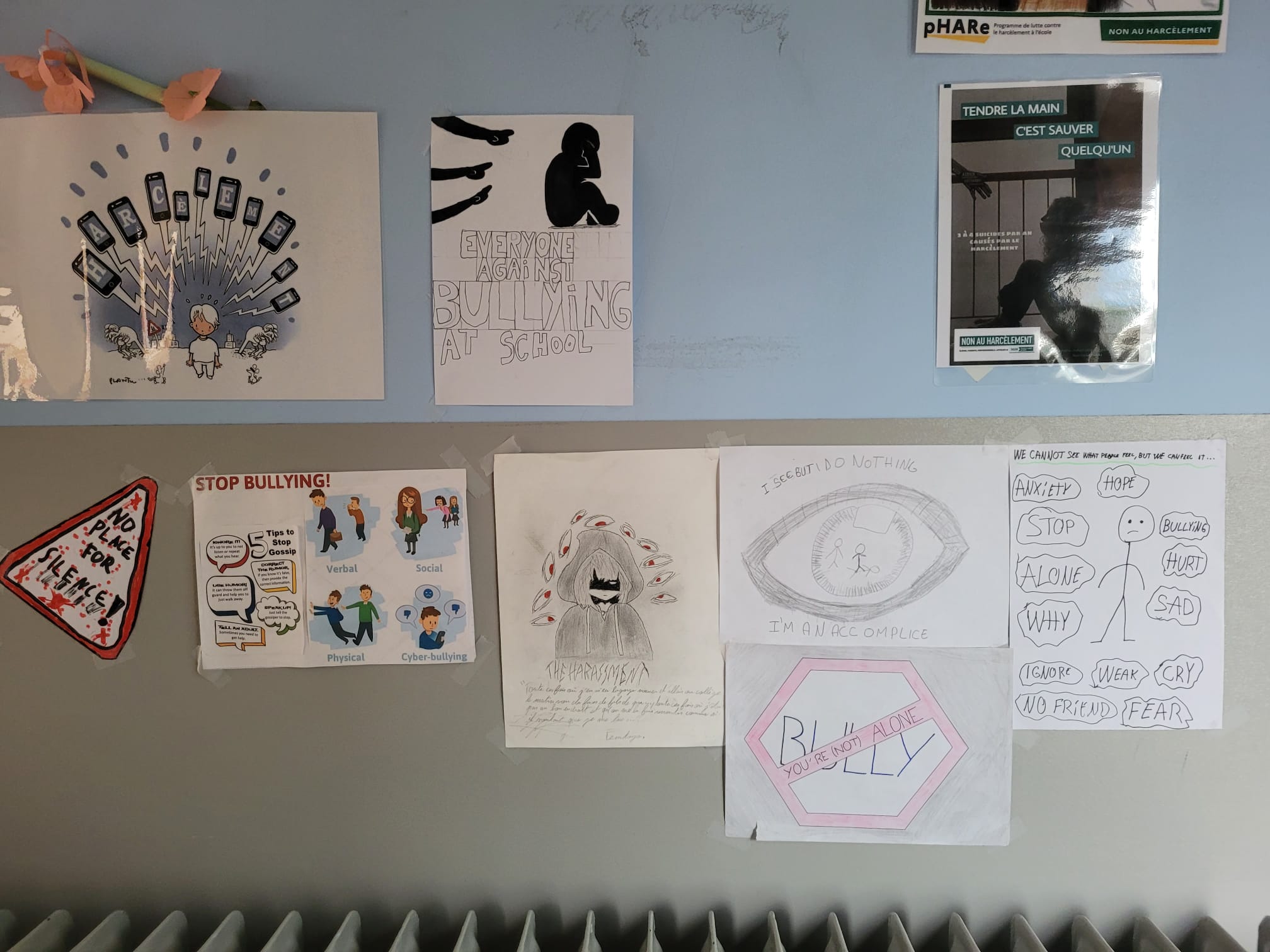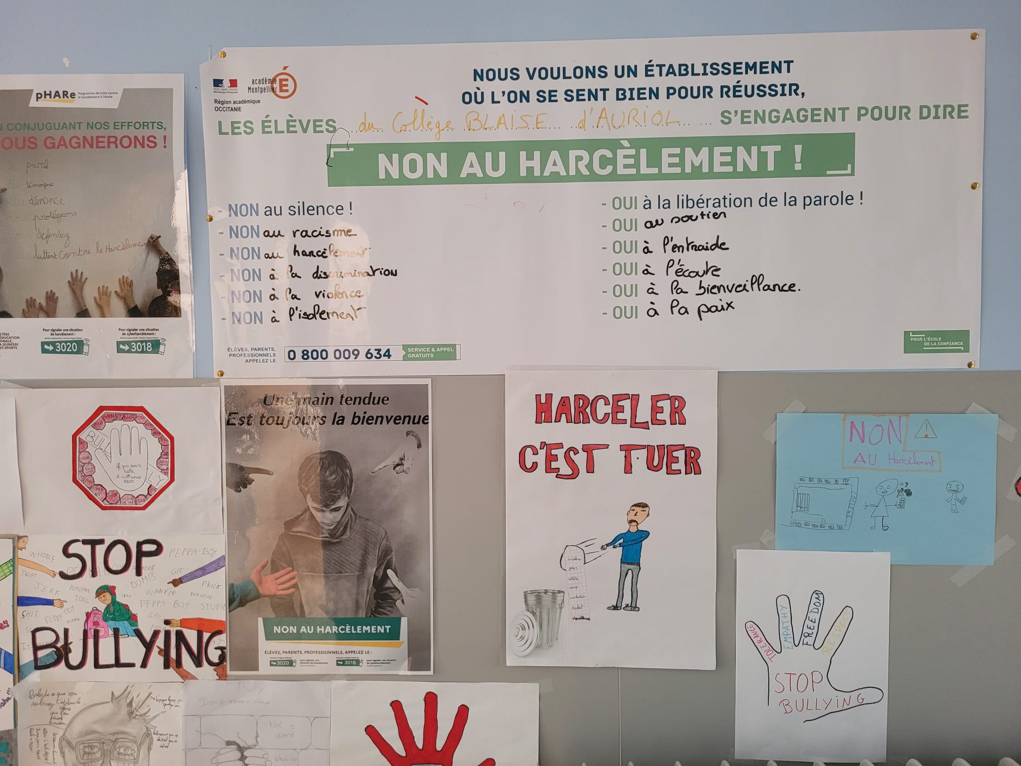 A la suite d une séquence sur le harcèlement en cours d'anglais, les élèves de 4A et 4C ont réalisé des affiches que vous pouvez retrouver dans le couloir B, face à la vie scolaire.